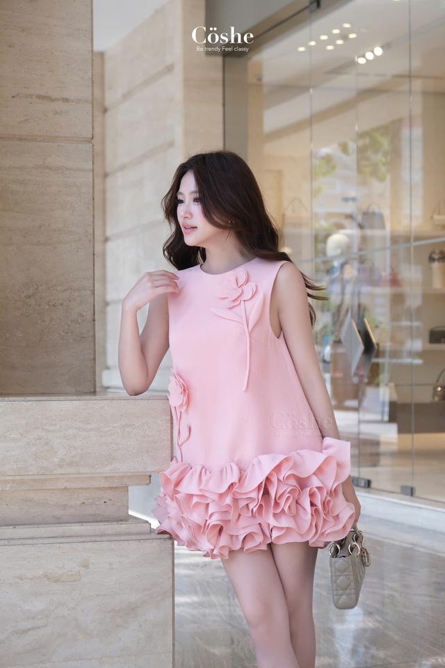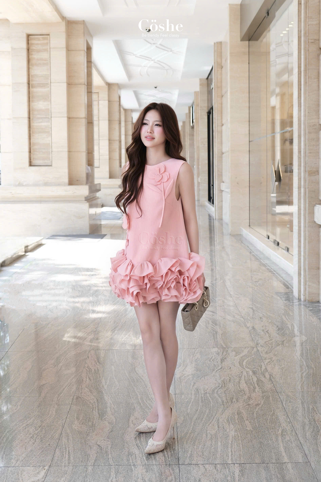 RTS Coshe Bloom Robe Femmes À Volants Robe À Couches Col Rond D'été Tenue Quotidienne De Mariage Invité Vintage Princesse Style Élégant