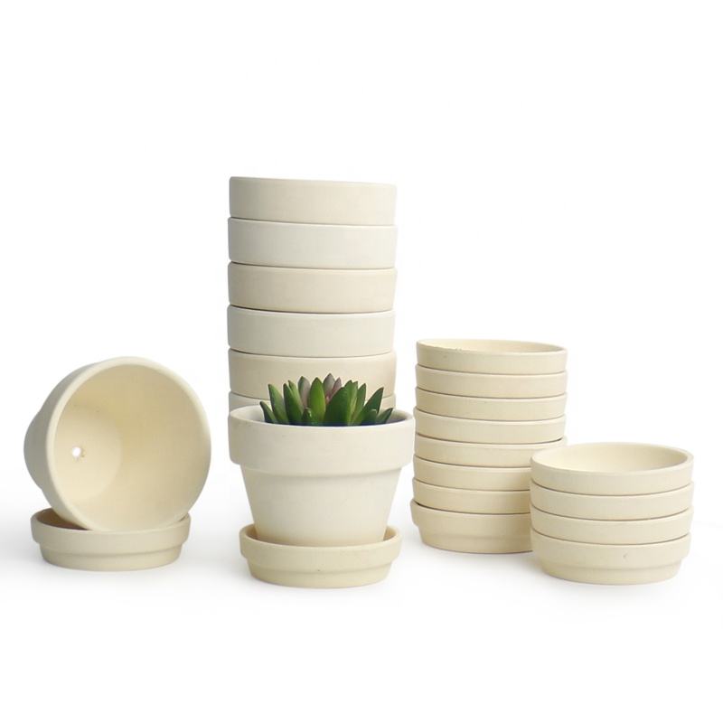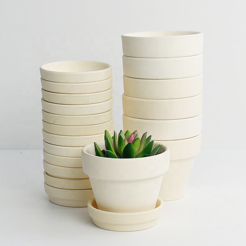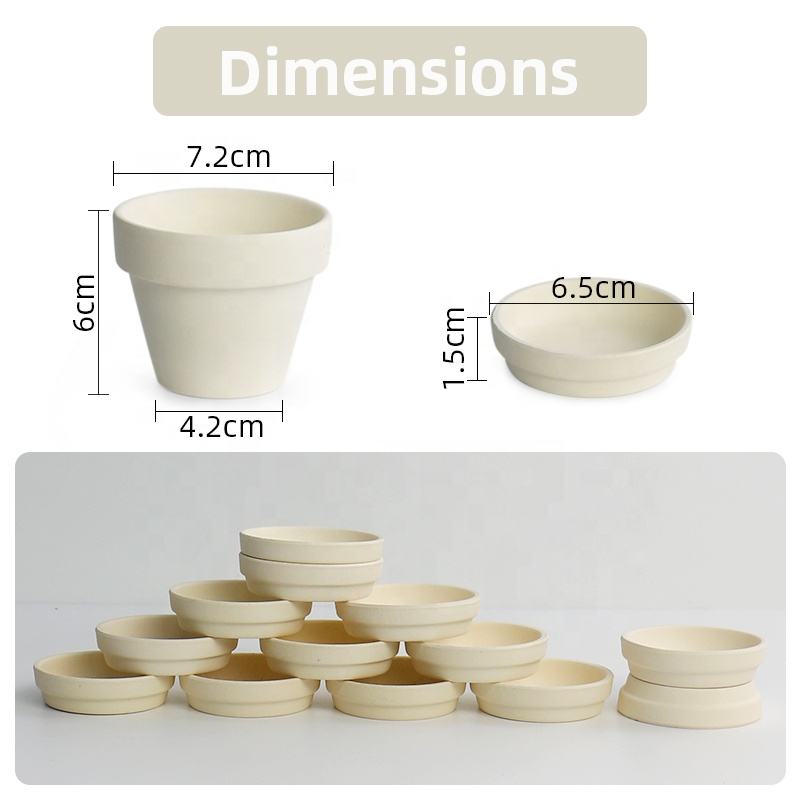 RTS Creative 3 \ "Mini Pot en terre cuite rond en argile blanche Pot pour plantes succulentes avec soucoupe pour la maison et le jardin Cadeaux de bricolage