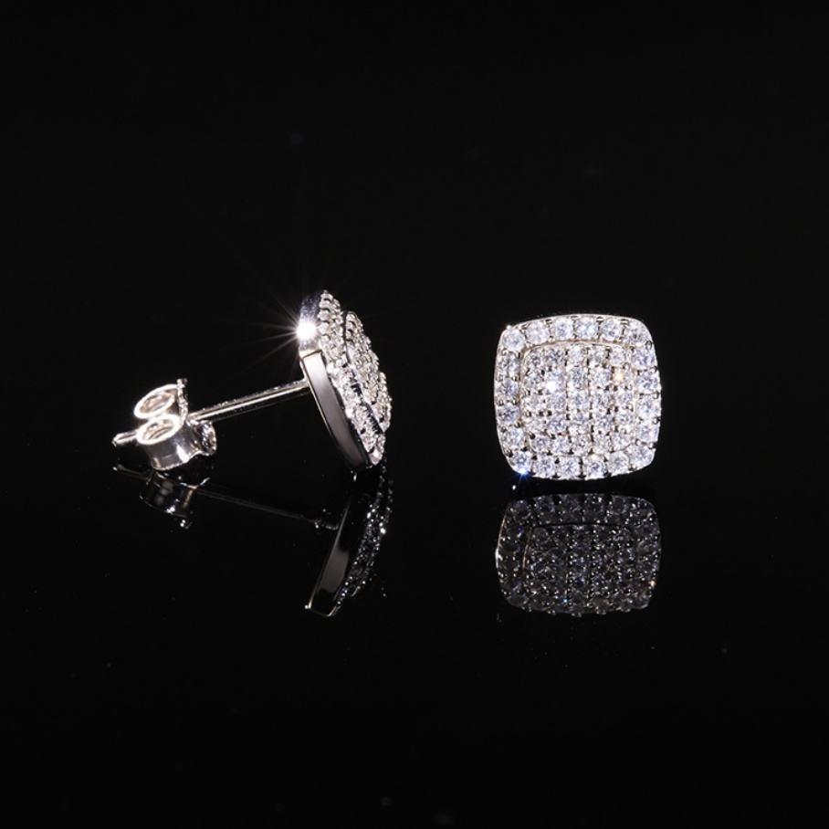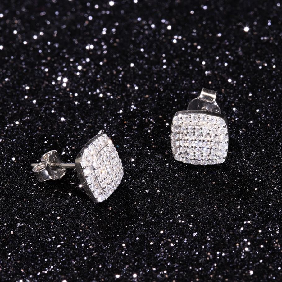 Boucles d'oreilles carrées RTS Design en argent sterling massif, serties de diamants en moissanite VVS, boucles d'oreilles brillantes pour bijoux quotidiens, cadeau
