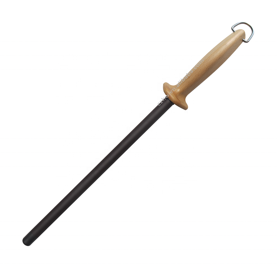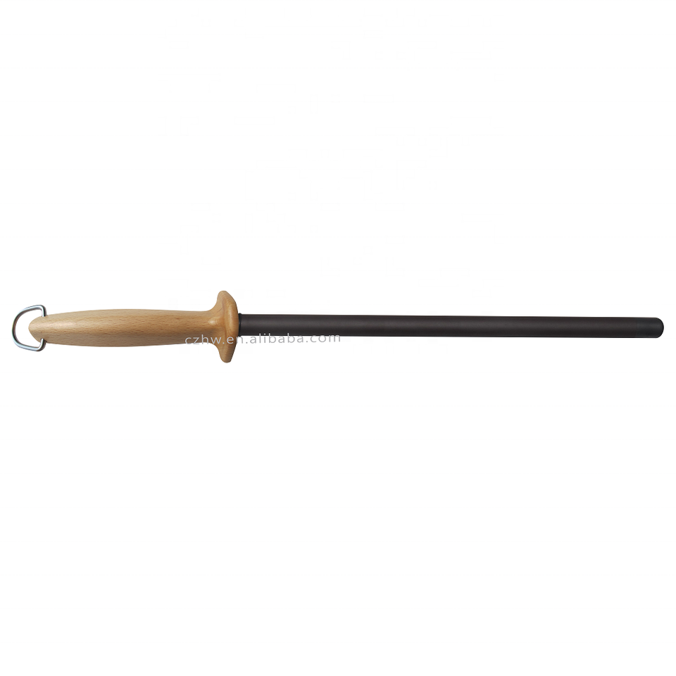RTS Exclusively Shatterproof 16mm Black Ceramic Honing Rod Extra Fine Grit 1500- Stainless Steel Hanging Ring Beech Wood Handle