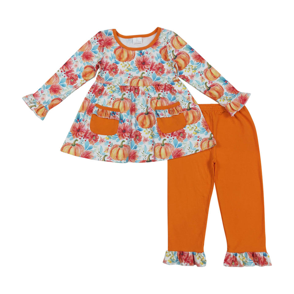 RTS Automne Hiver Ensemble pour Filles Manches Longues Citrouilles Conception En Gros Bébé Vêtements Pas De quantité minimale de commande