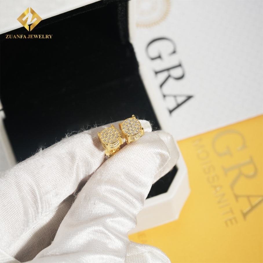 Boucles d'oreilles clous rondes en argent massif 925 avec moissanite VVS, style hip-hop, bijoux de rappeur RTS Fashion
