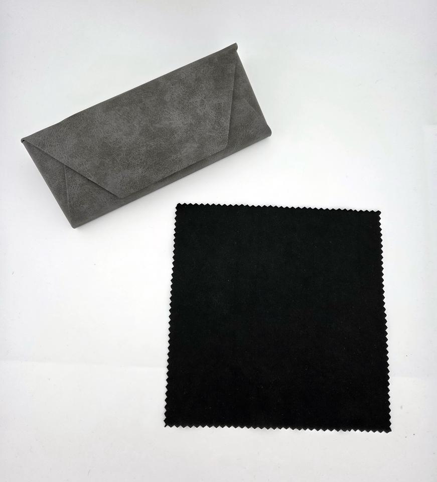Étui à lunettes et lunettes de soleil rectangulaire semi-rigide en PU fait main, tendance, avec chiffon de nettoyage pour hommes et femmes
