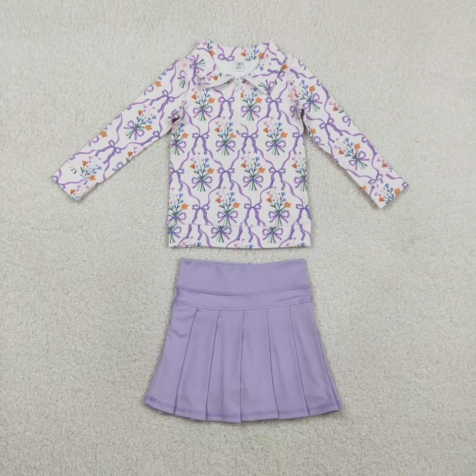 Ensemble décontracté pour petites filles : pull imprimé nœuds floraux, jupe plissée en tissu peigné respirant et short doublé – Tenue assortie pour sœurs