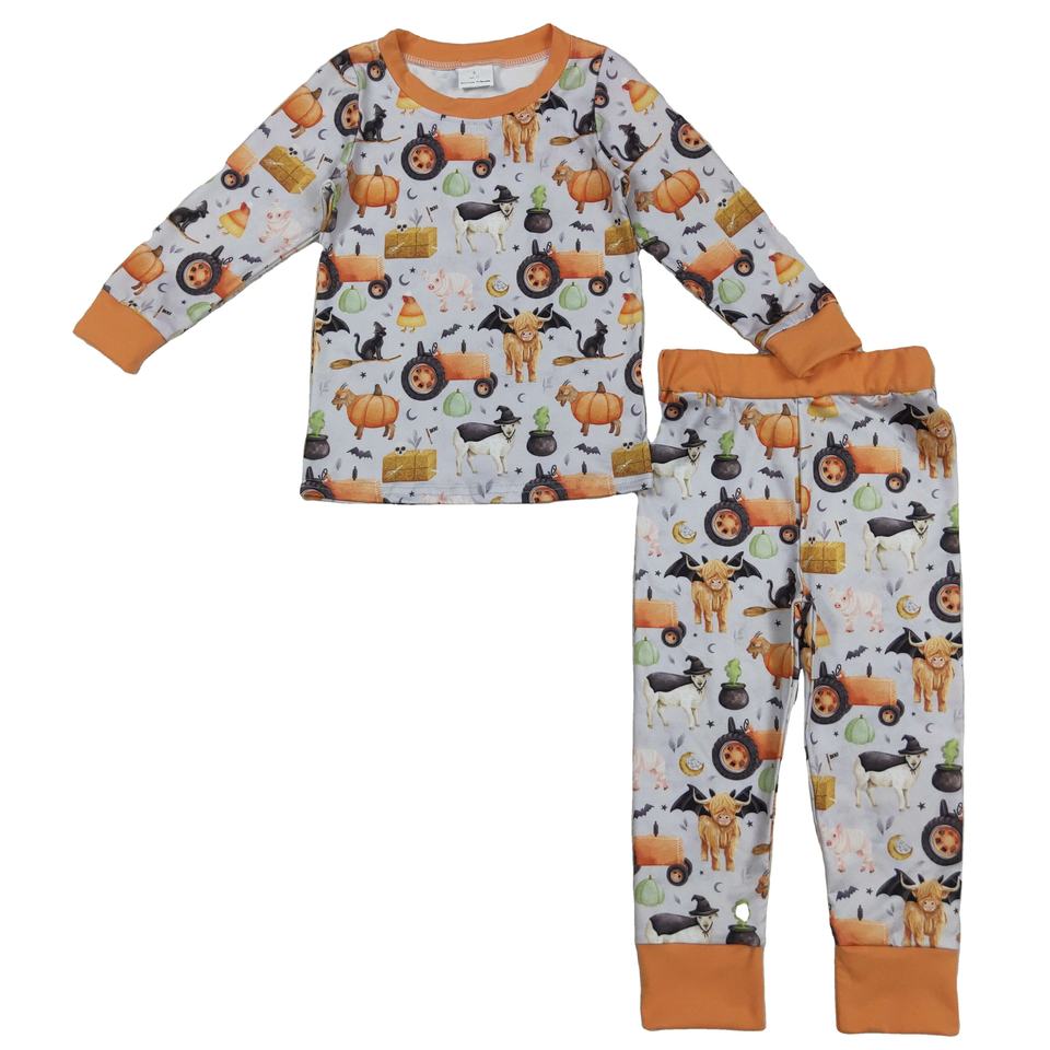 RTS Halloween Truck Cattle Print Kids Boys Pajamas Outfits Wholesale Soft Sleepwear Children's Clothing For Boys