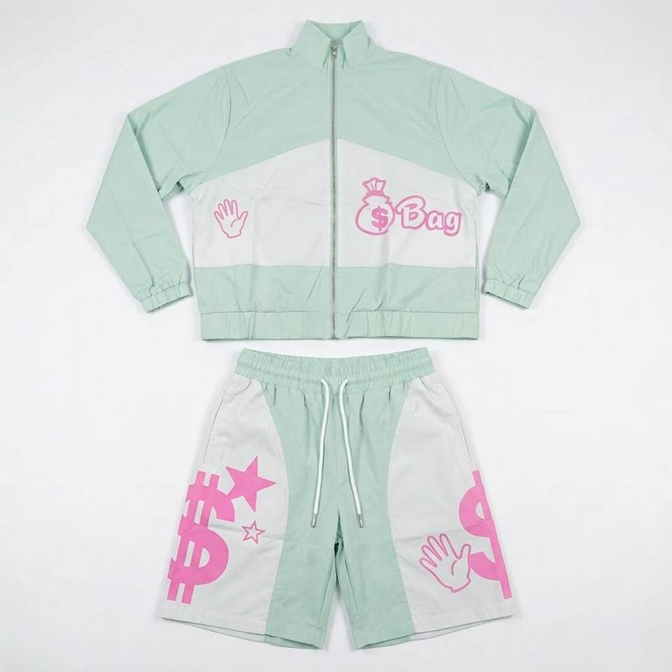 Ensemble coupe-vent en nylon blanc pastel pour homme, personnalisable avec logo, haute qualité, idéal pour l'été, streetwear, vestes et shorts.