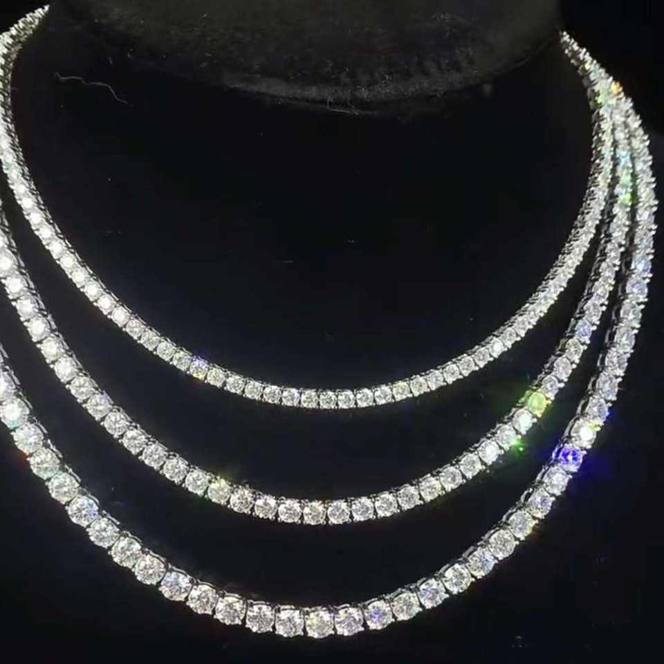 Collier chaîne tennis style hip-hop RTS, diamant moissanite de laboratoire 2,0 mm-6,5 mm, argent 925, glacé, moissanite VVS