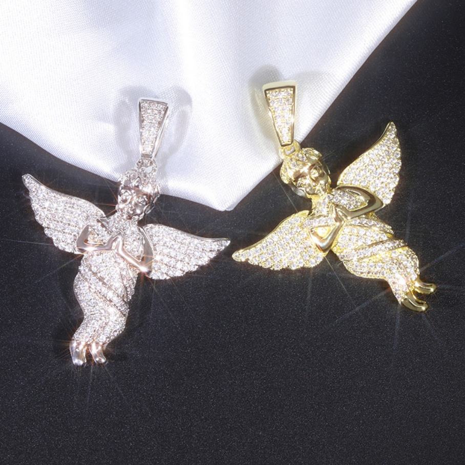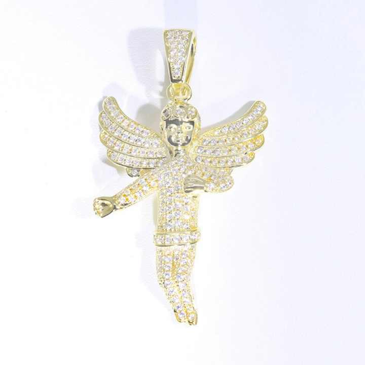 Pendentif Ange Hiphop RTS en Argent Sterling avec Diamant Moissanite Couleur D pour Chaîne Cubaine
