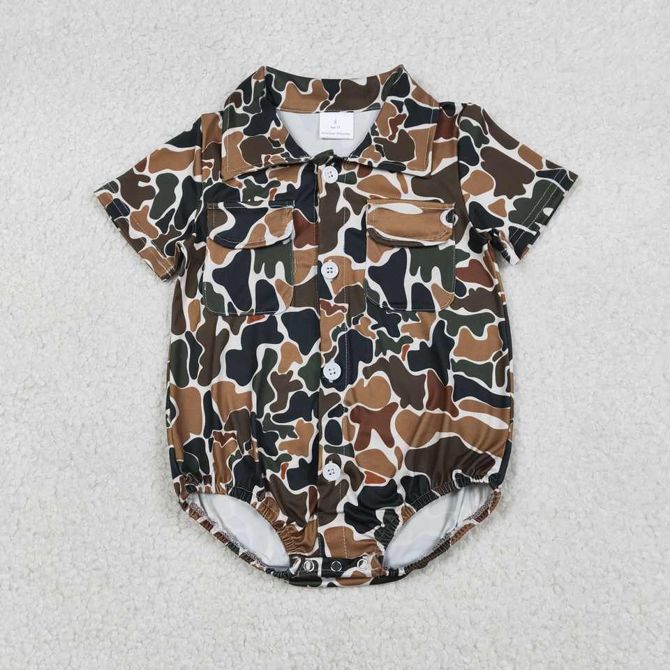 RTS Hunting Camouflage Newborn Clothes Pockets Buttons Baby Girls Bubble Romper Casual Cotton Spandex Wholesale Fashion