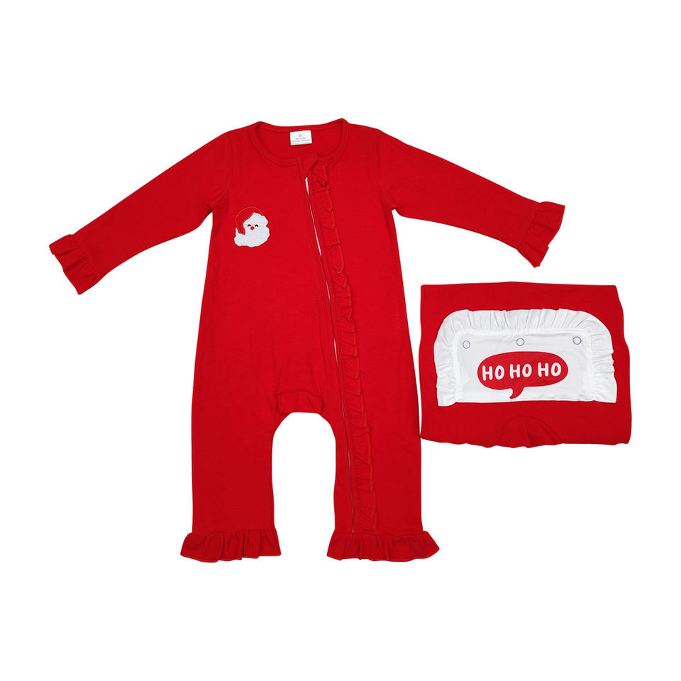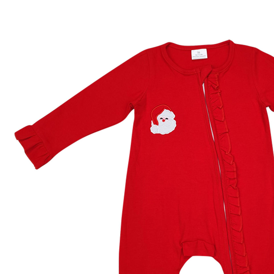 RTS Nourrissons Rouge Noël Père Noël Broderie Combinaison à Manches Longues Vente en Gros Barboteuse pour Enfants Fermeture à Glissière