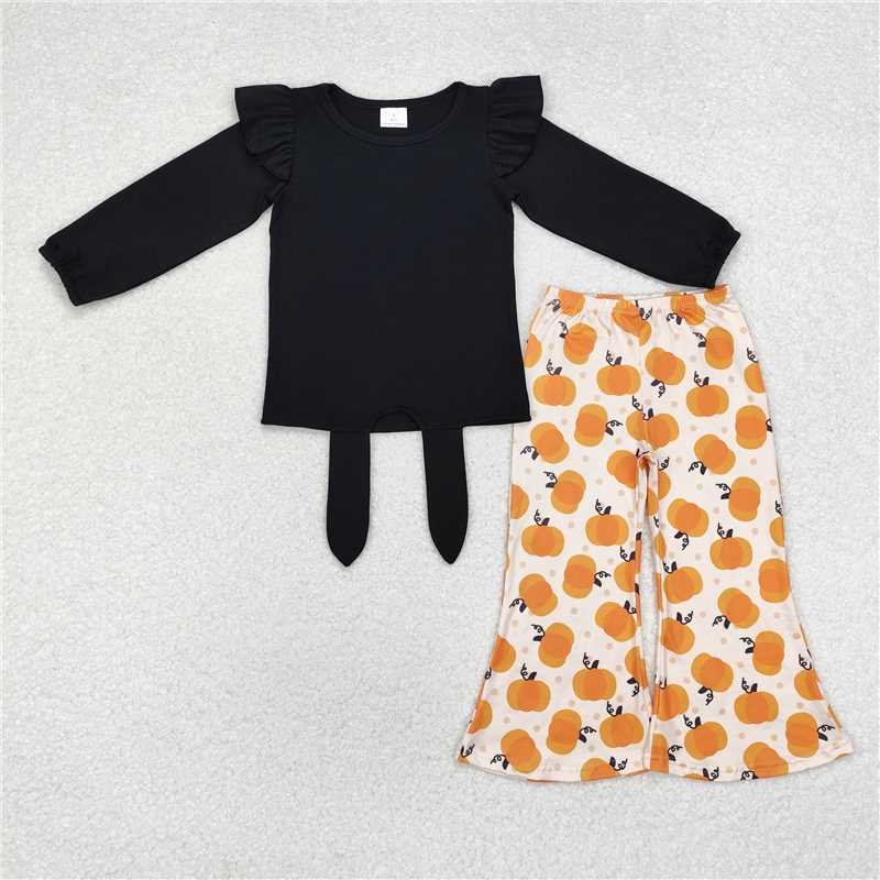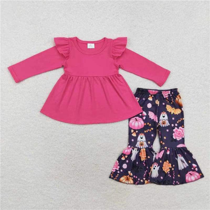 RTS Little Girl Boutique Casual Outfits Pink Spooky Pumpkin Print Fall Long Sleeve Toddler Girl Child Clothing Wholesale No MOQ