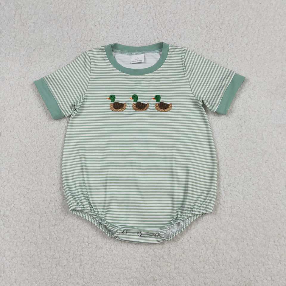 RTS Newborn Camouflage Mallard Ducks Print Baby Girls Bubble Romper Hidden Zipper Cotton Casual Worsted Fabric Baby Clothing