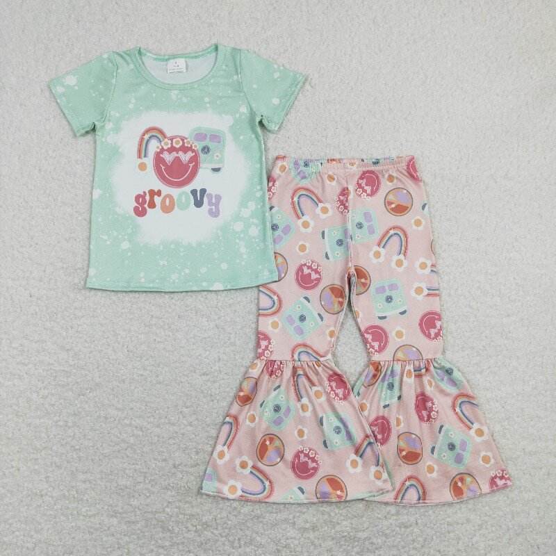 Vêtements pour enfants en coton et élasthanne à imprimé fleurs roses décontractés, sans MOQ, vente en gros, manches volantes pour l'automne
