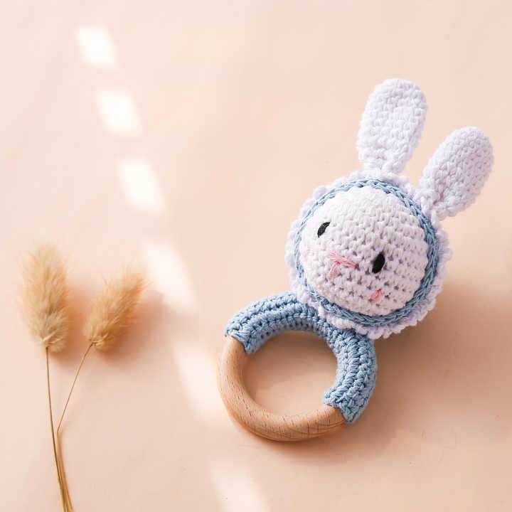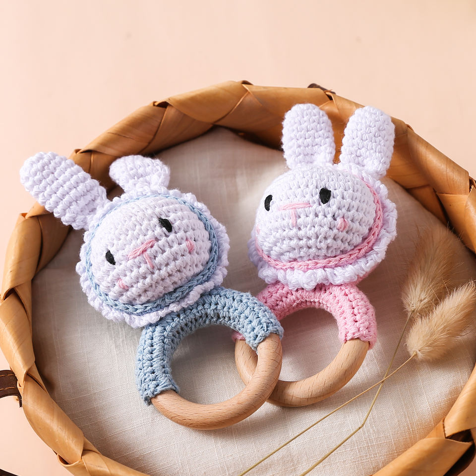 RTS doux infantile divertissement lapin hochet Crochet dentelle bois jouet pour dentition bébé hochets