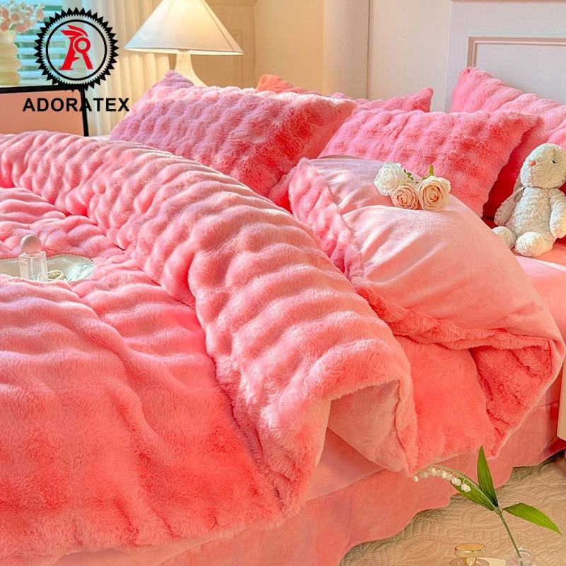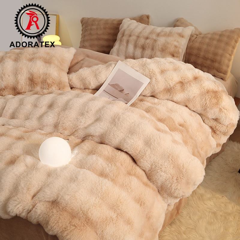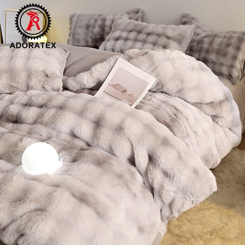 Ensemble de literie d'hiver en peluche de lapin épaisse 100% polyester à quatre pièces en gros RTS, motif imprimé, housse de couette pour la maison