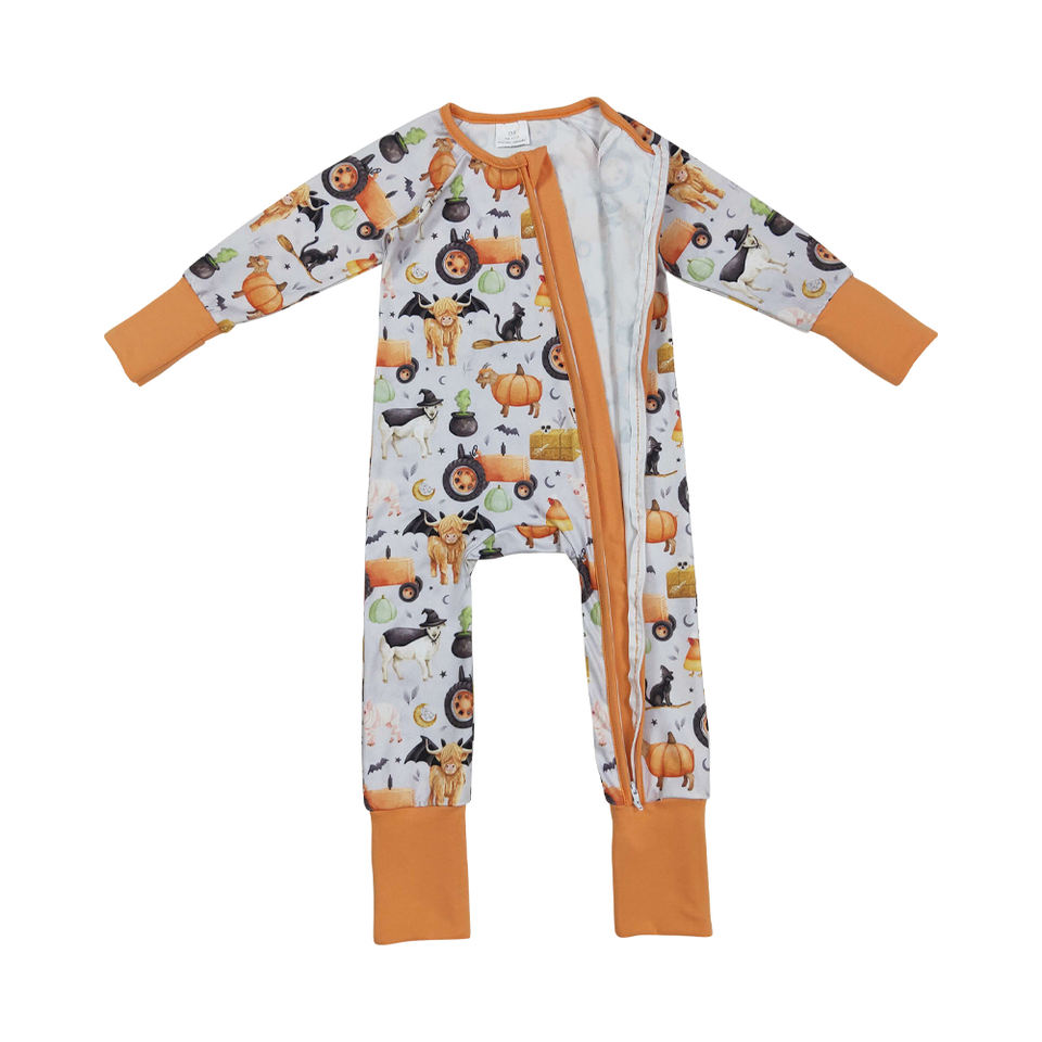 RTS Wholesale Kids Clothes Halloween Highland Cow Romper for Baby Spring Fall Design Clothes