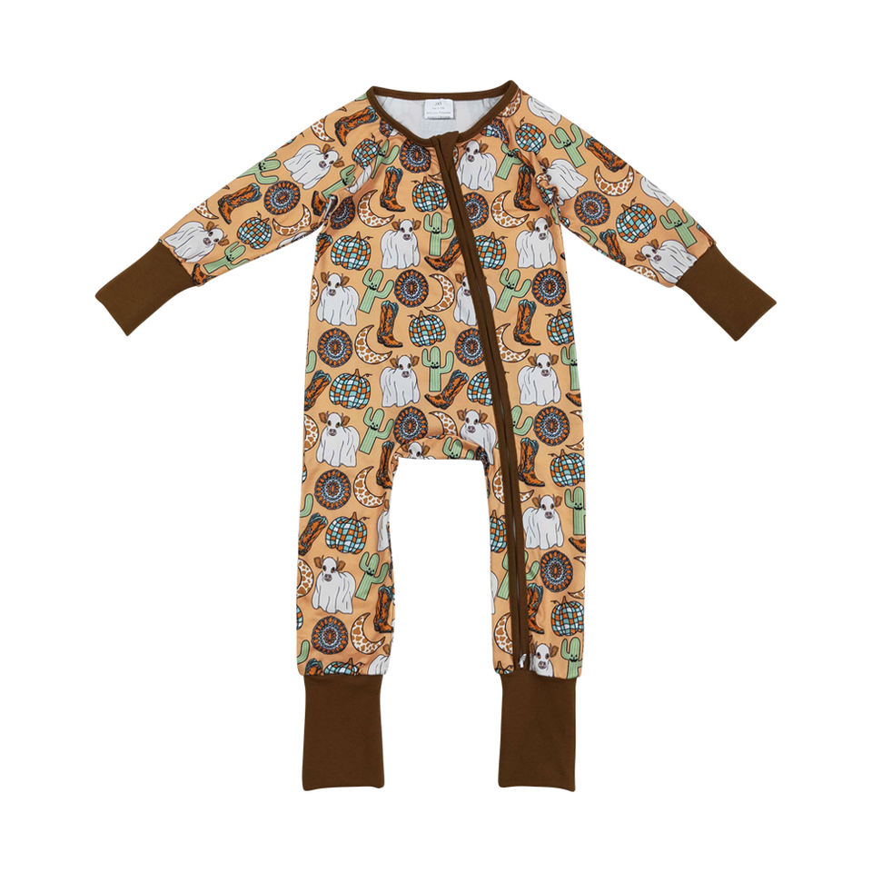 RTS Wholesale Knitted Long Sleeve Western Pumpkins Fall Romper with Zipper Closure for Baby Girls Spring/Fall Design Clothes