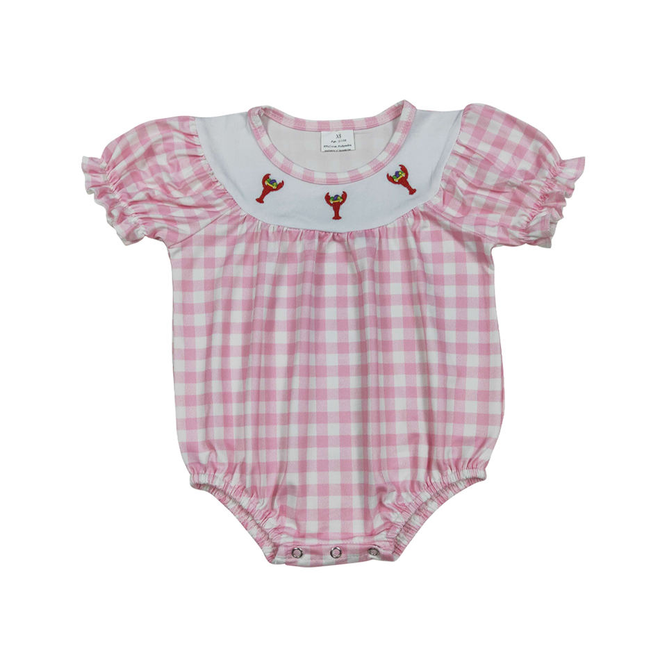 RTS Wholesale Kids Clothes NO MOQ Embroidery Crawfish Romper for Baby Girls Spring Fall Design