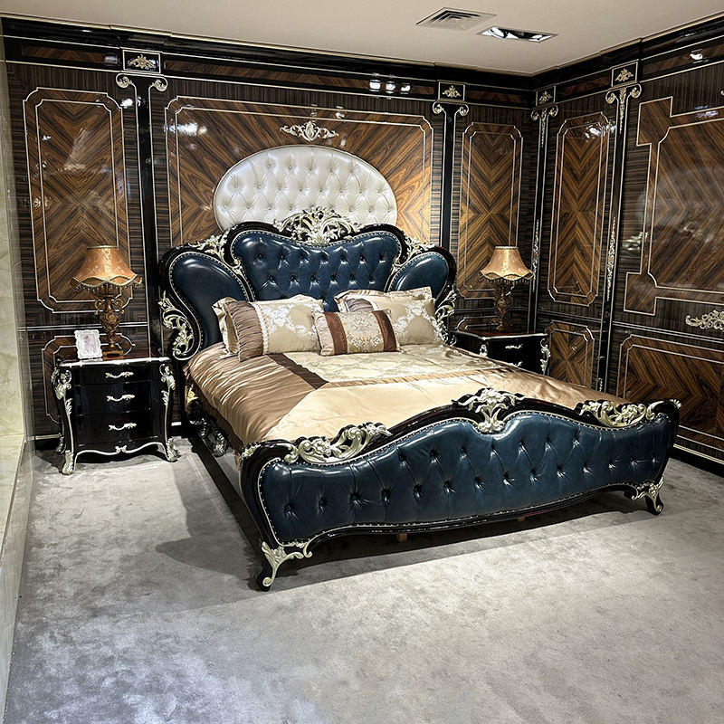 Ensemble de Lit en Cuir Français RUI SEN – Lit Double King Size Luxe Européen 1,8 Mètre, Dossier Souple en Bois Massif, Lit de Mariage pour Chambre