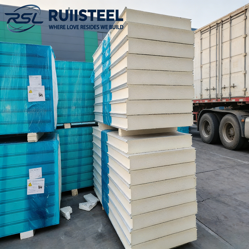 Panneau d'isolation pour entrepôt frigorifique RUIISTEEL, panneau sandwich PU/PIR, fabrication directe en usine, isolation thermique haute efficacité