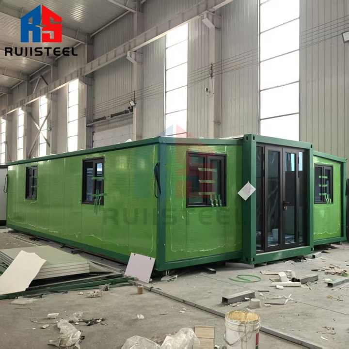 RUIISTEEL Maison conteneur préfabriquée 4 chambres avec toit vert