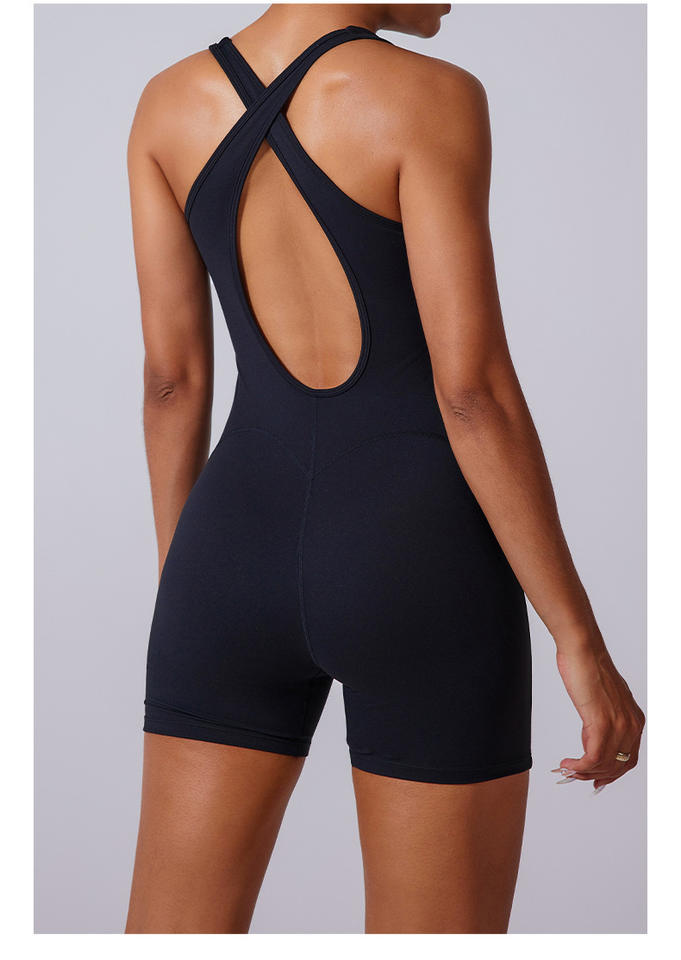 Combinaison de yoga respirante et écologique de haute qualité RUIQUWIN, logo personnalisé, ensemble de shorts élégants sans dos, taille élastique pour la salle de sport 1