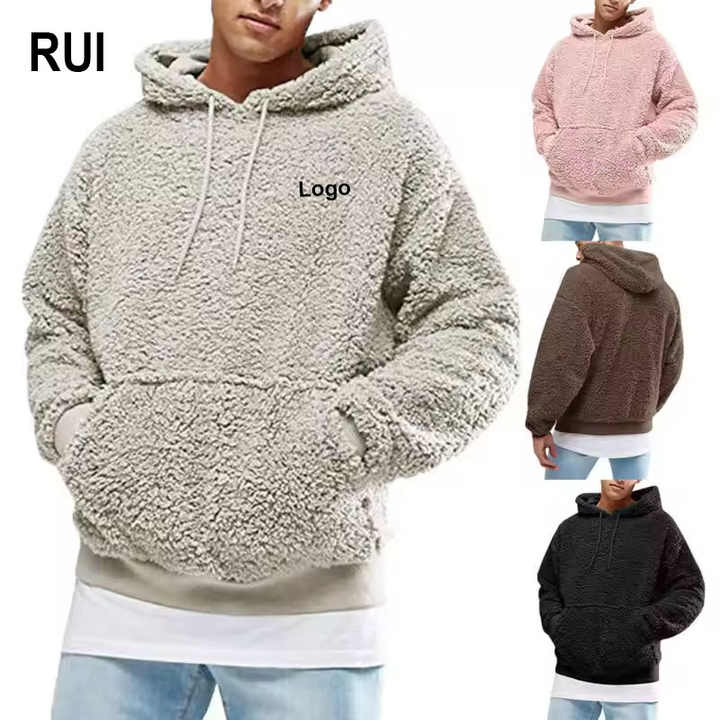 RUIQUWIN hommes automne hiver chaud velours côtelé sweat à capuche haute qualité coupe ample grandes poches couleur unie décontracté haut de sport