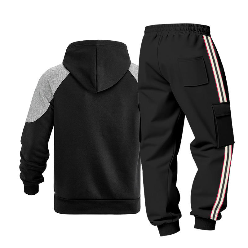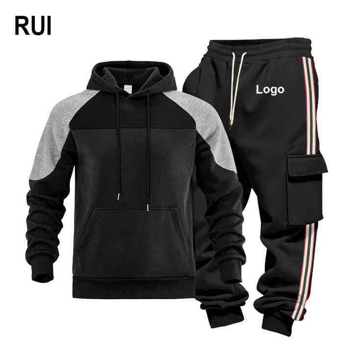 RUIQUWIN Vente en gros Ensemble de survêtement décontracté deux pièces pour hommes, grande taille, épais, avec sweat à capuche et pantalon de survêtement rayé, collection printemps