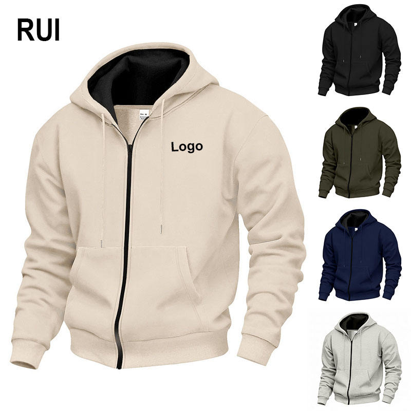 RUIQUWIN Vente en gros – Nouveau sweat à capuche zippé pour homme, couleur unie, grande taille, veste décontractée ample et respirante pour le sport et le fitness