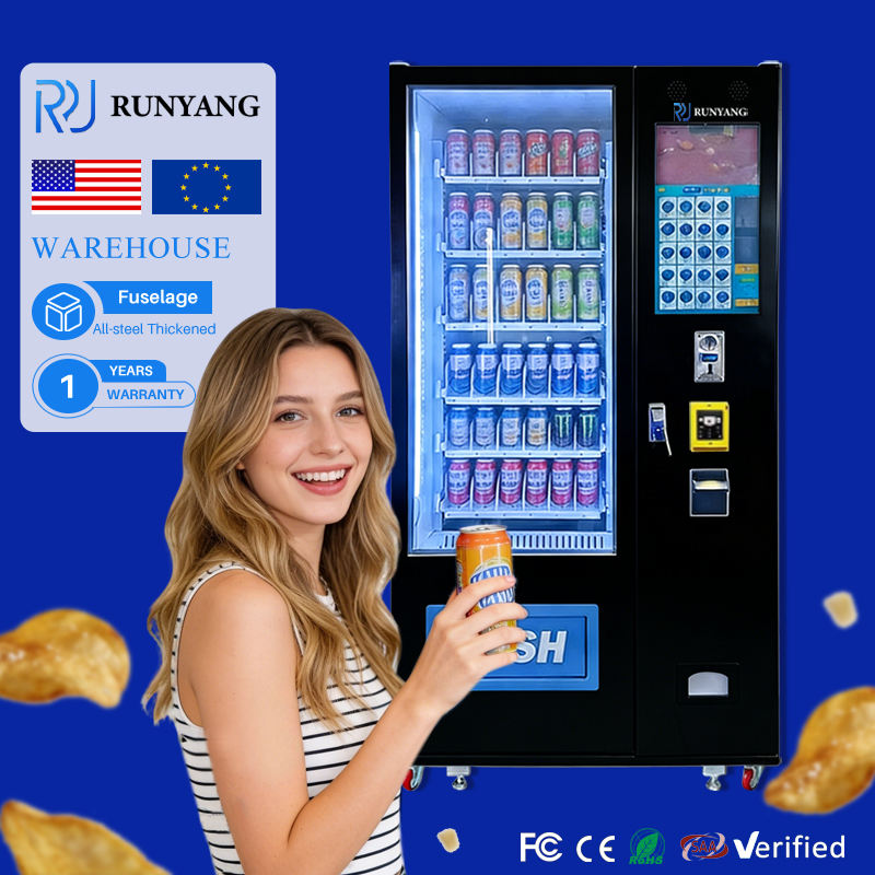 Distributeur automatique RUNYANG compact à congélation instantanée, alimenté par IA, avec écran tactile SDK et couleurs personnalisables pour snacks, boissons et plus encore