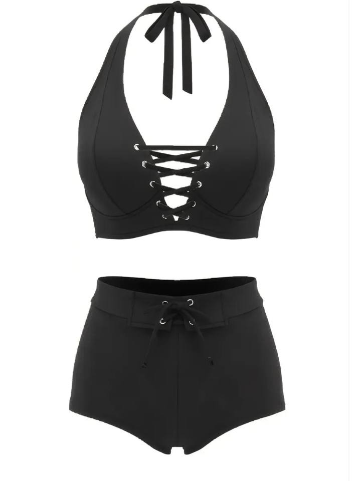 RUS Meilleure Vente Ensembles de Bikini Taille Haute pour Femme, Personnalisables par un Designer, Maillot de Bain Deux Pièces Effet Ventre Plat à Nouer sur le Devant