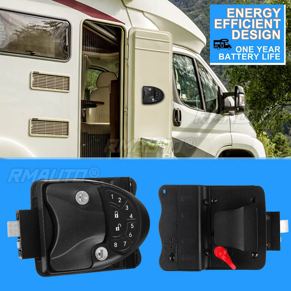 Serrure de porte sans clé pour camping-car, serrures de porte électriques sans clé pour caravane avec 2 télécommandes, verrouillage et mode silencieux