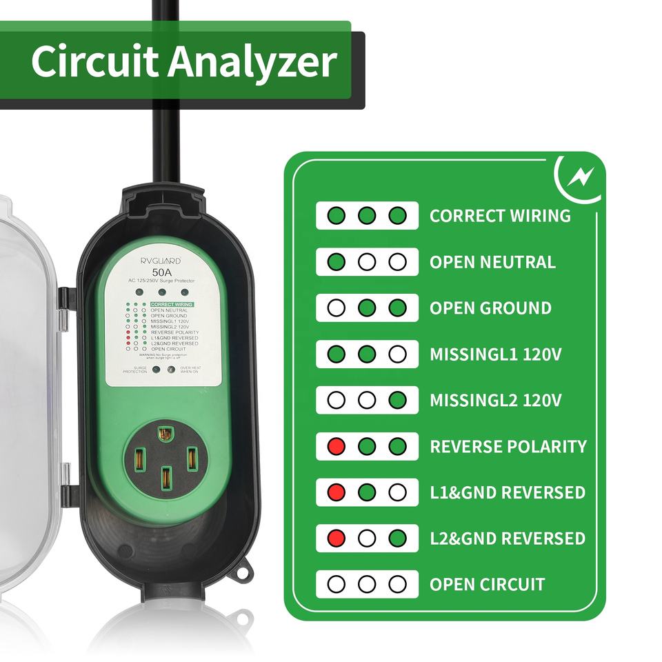 Protecteur de surtension intelligent portable RV Surge Guard 50 ampères pour remorque, camping-car, NEMA 14-50, dispositif de test de circuit RV