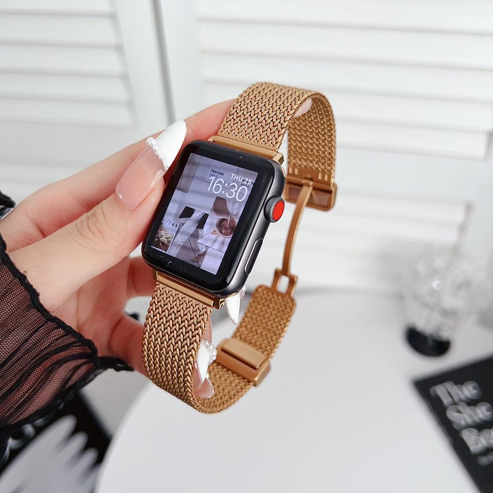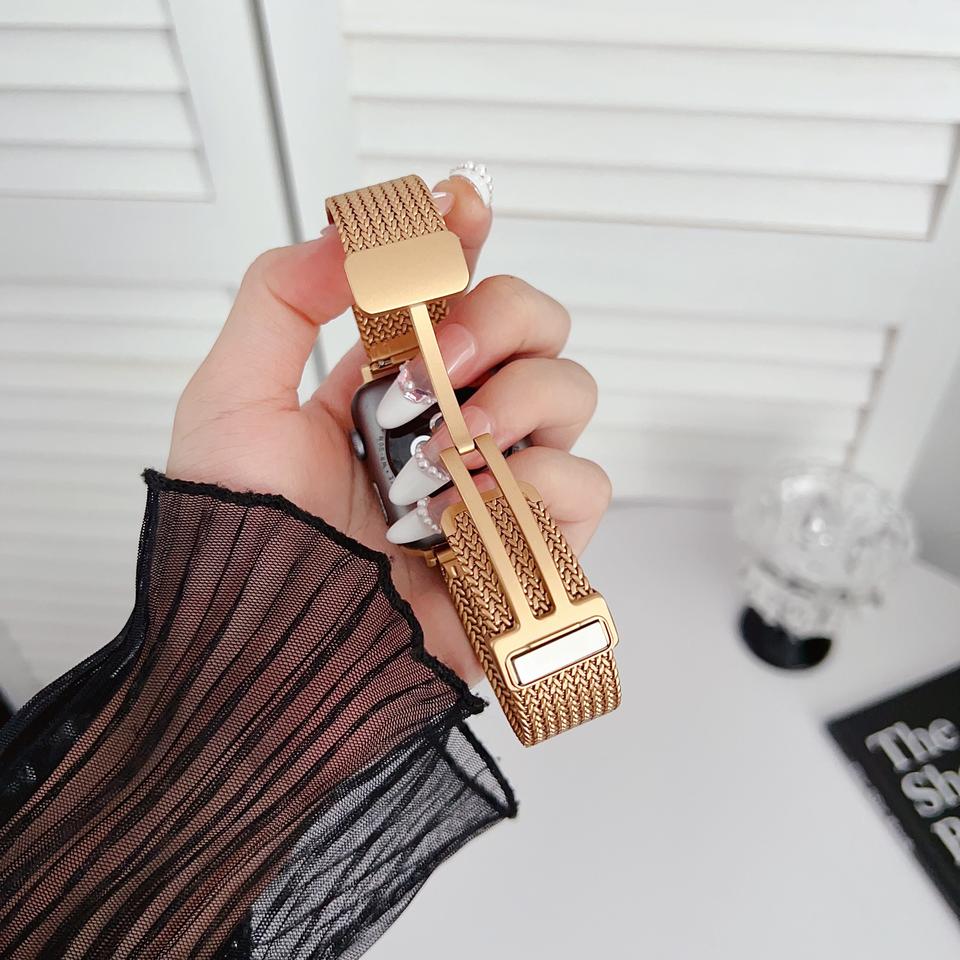 RYB New Look doux pour la peau boucle magnétique maille milanaise Bracelet en métal en acier inoxydable pour Apple Watch Series 10 9 8