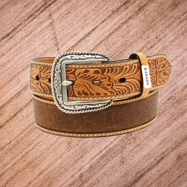 Rabada Handmade Western Cowboy Ceinture en cuir véritable avec deux tons sculptés à la main Fabricant et grossiste