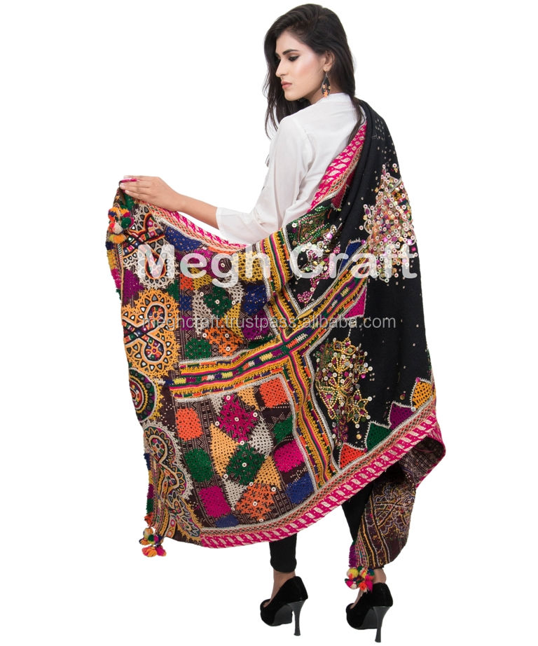 MATERIAL::Hand Embroidered Mirror Work Woolen Shawl