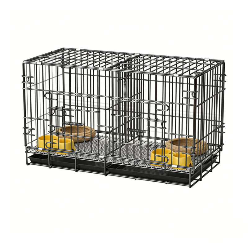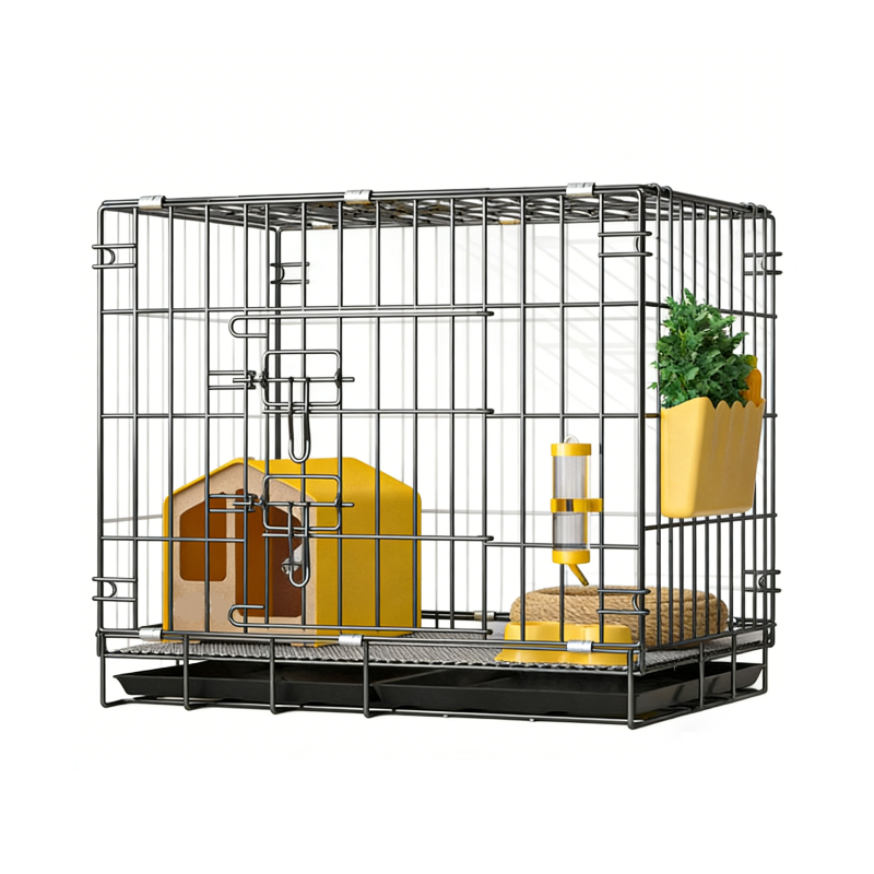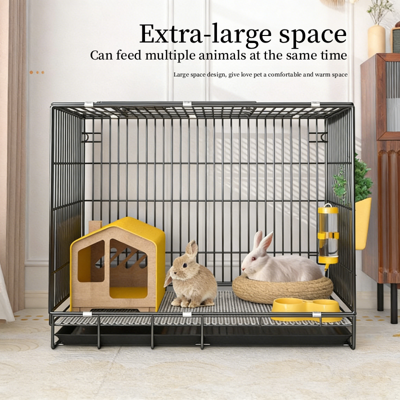 Cage pliable pour lapin et chat, structure métallique, plateau en plastique solide, design simple à bouton, facile à nettoyer, pour intérieur, extérieur et voyage, renforcée pour animaux de compagnie