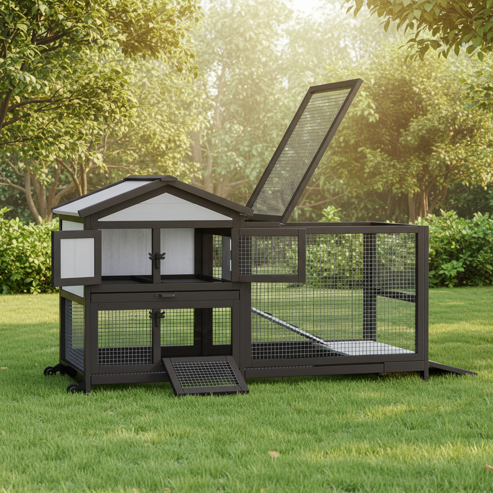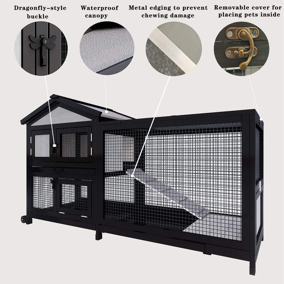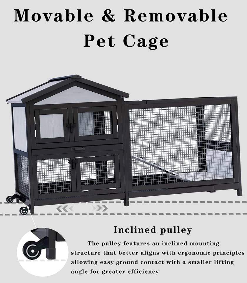 Cage à lapins extérieure et intérieure à 2 étages, poulailler, cage à cochon d'Inde sur roues, cage à lapins avec toit imperméable