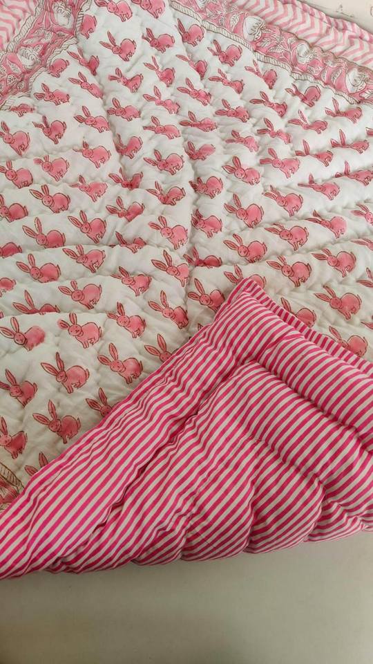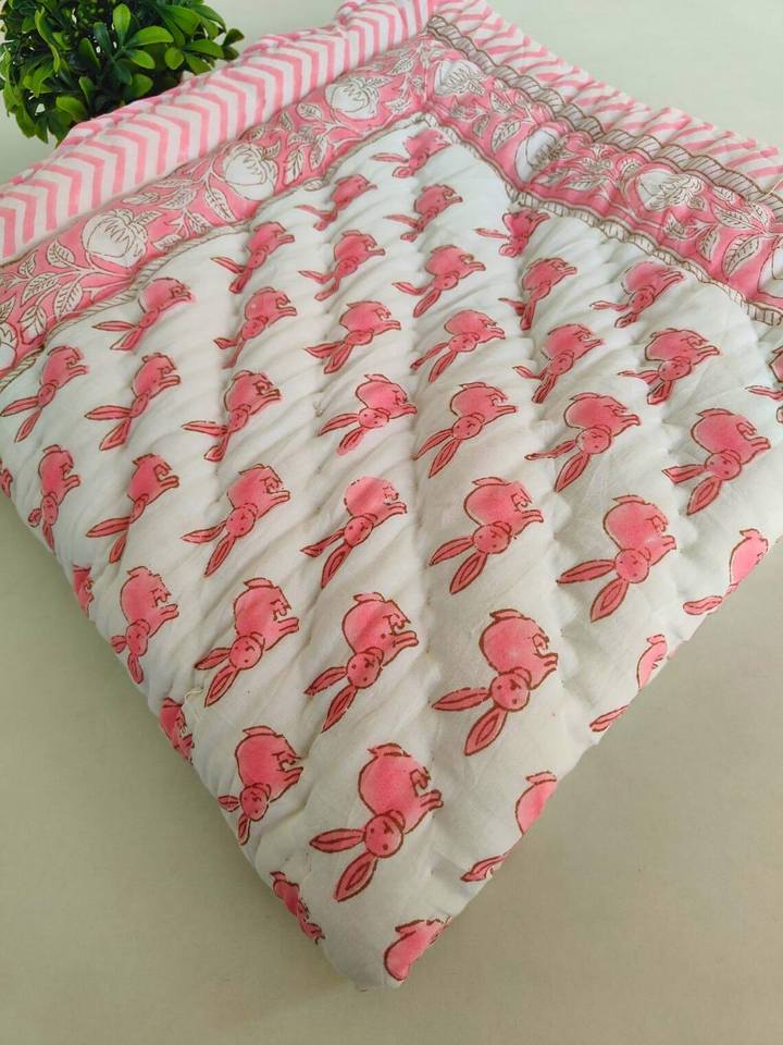 Couverture matelassée rose et blanche à motifs imprimés, 100 % coton, écologique, faite à la main, style hôtel de luxe, surdimensionnée