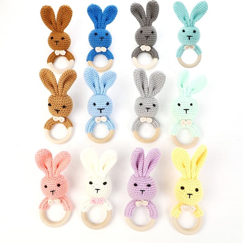 Hochet en forme de lapin pour bébé, jouets de qualité alimentaire, hochet en bois de coton fait à la main