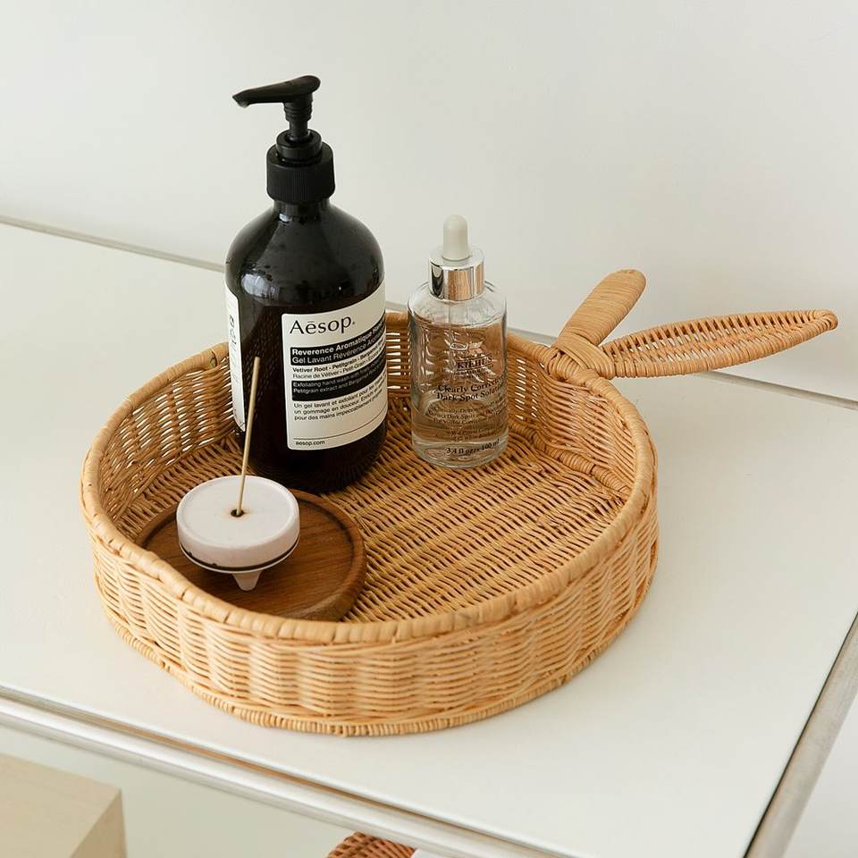 Plateau en rotin en forme de lapin fait à la main à partir de matériaux naturels mignon organisateur écologique élégant pour pépinière ou décoration intérieure