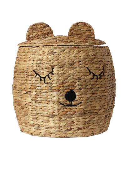 Panier de rangement en forme de lapin pour enfants, panier en jacinthe d'eau naturelle tissé, panier naturel pour bébé, panier à linge accrocheur pour la crèche