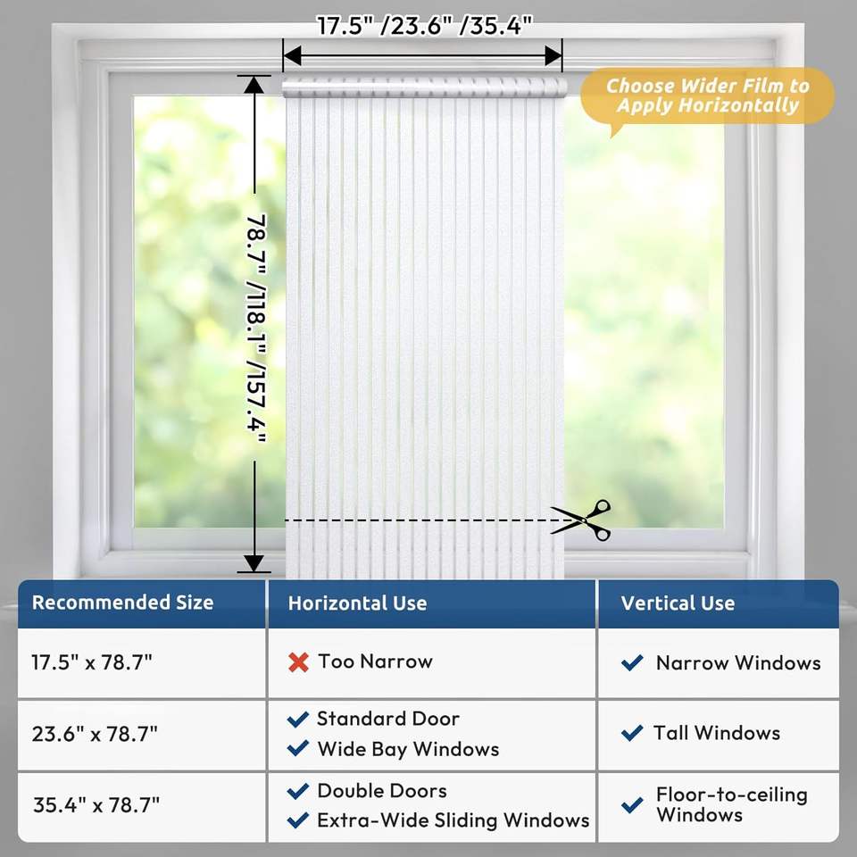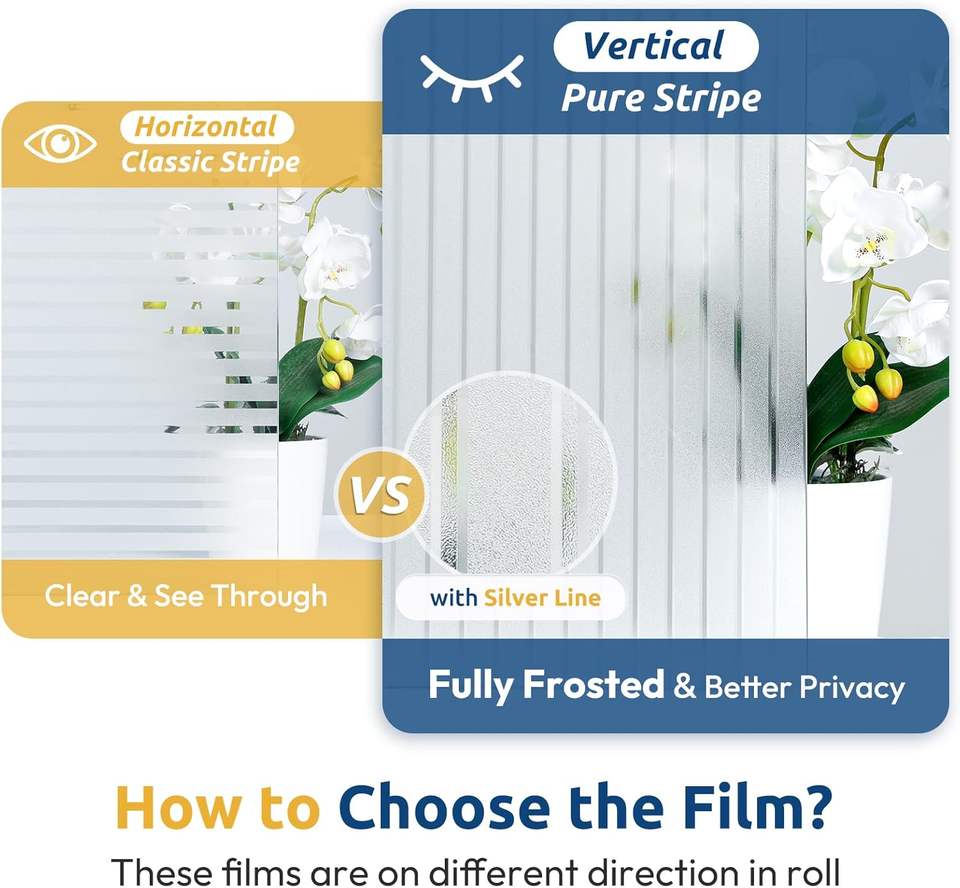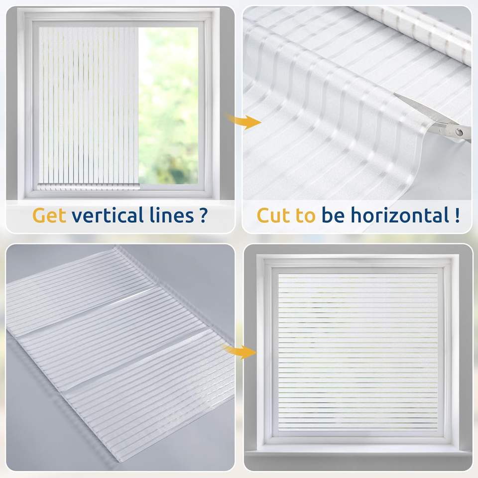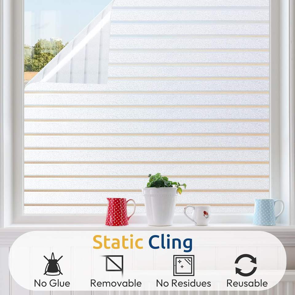 Film de fenêtre rectangulaire en vinyle rayé givré Rabbitgoo avec adhésif statique, protection UV et confidentialité pour la maison/le bureau 45x200CM