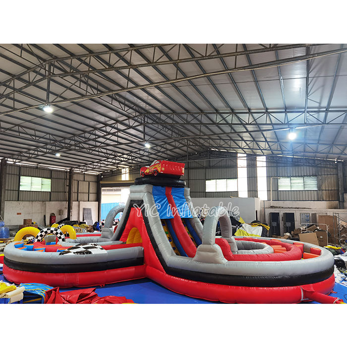 Course d'obstacles gonflable commerciale avec toboggan pour voiture de course