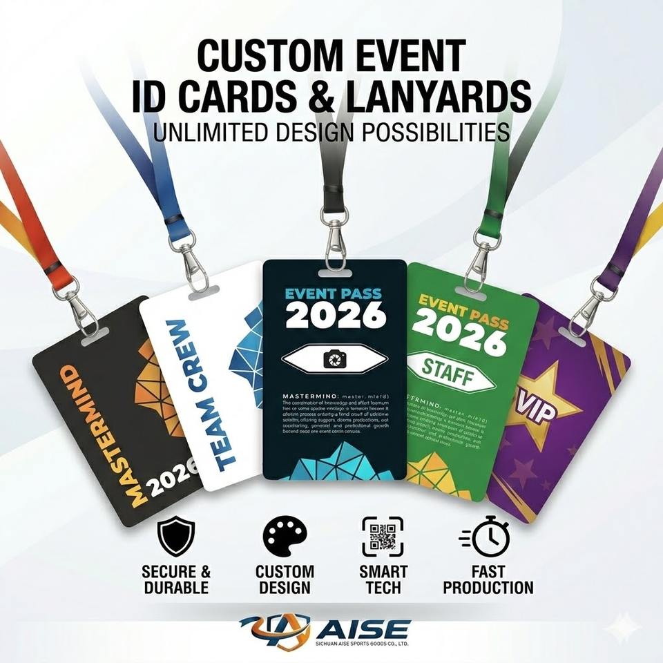 Badges d'identification personnalisés en PVC pour athlètes, prêts pour la course, avec cordons souples résistants aux déchirures, entièrement étanches, écologiques, et crochet métallique pour événements