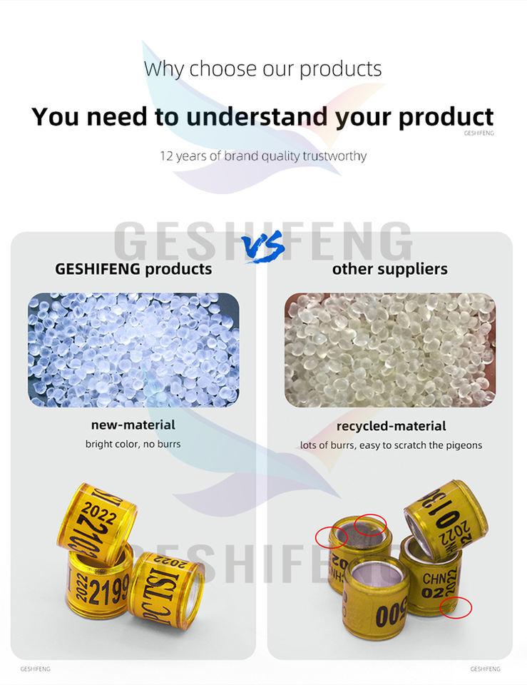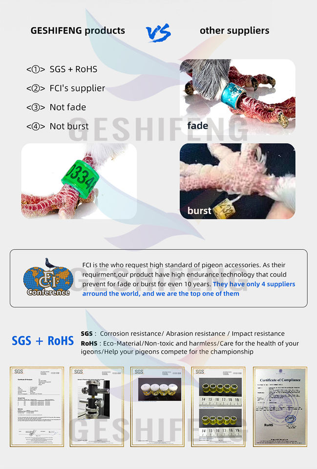 Bagues d'identification personnalisées pour pigeons de course 2023 certifiées FCI avec informations personnalisées