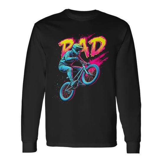 T-shirt à manches longues Rad Bmx Stunt Action, design graphique noir, vêtements pour hommes