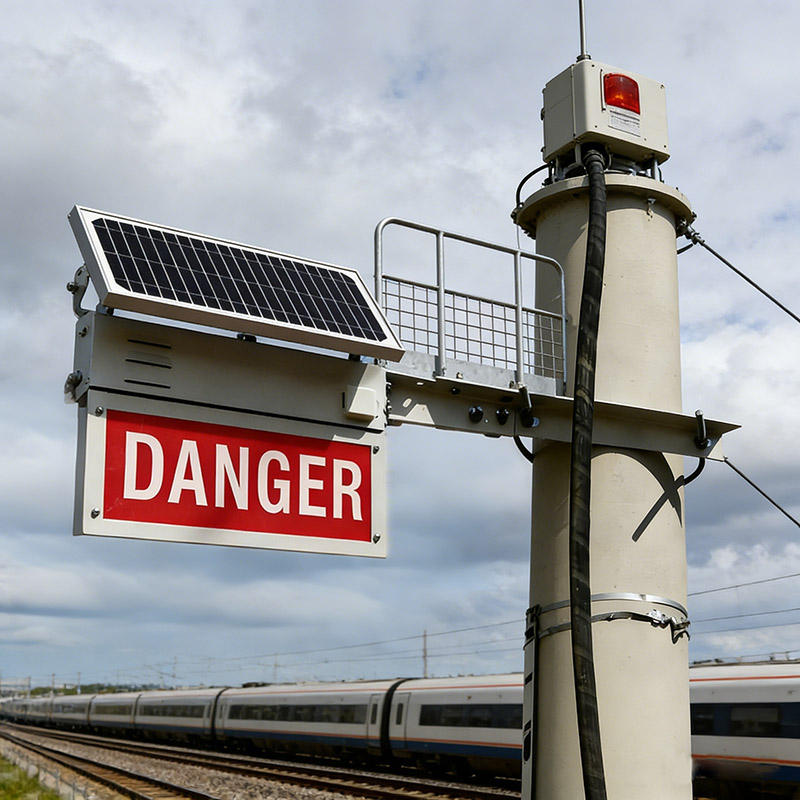 Capteur radar et infrarouge activant un signal sonore, sirène d'alarme solaire pour véhicule en mouvement rapide sous les lignes électriques