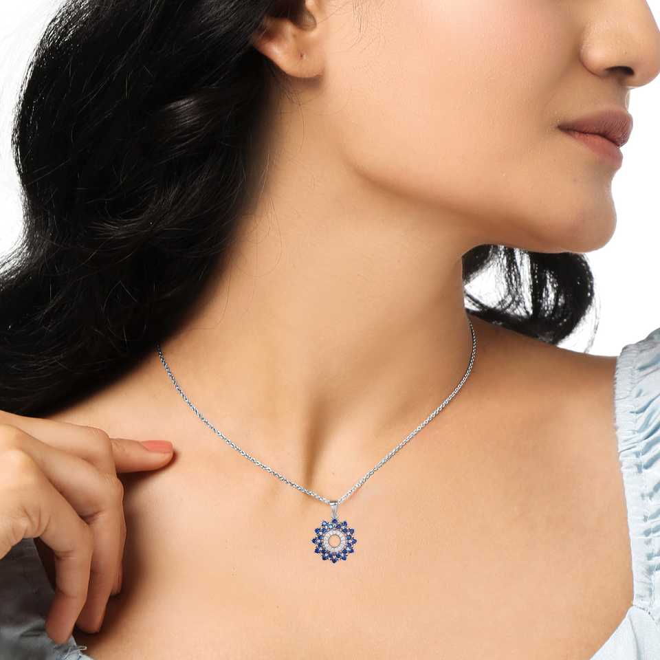 Pendentif fleur bleu radiant avec chaîne Figaro Bijoux religieux en alliage de cuivre à la mode avec un motif papillon perle diamant