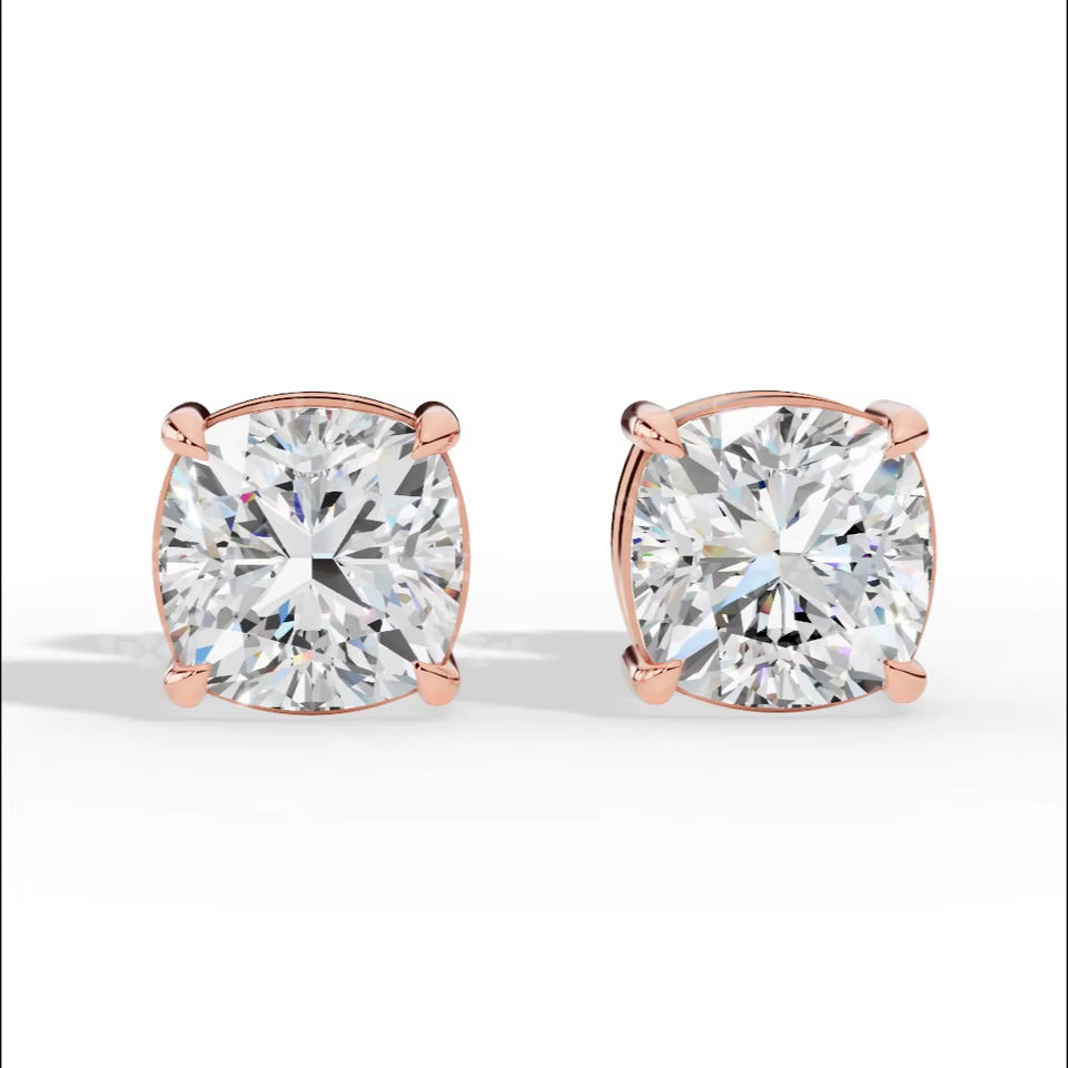 Boucles d'oreilles clous solitaires en diamant de laboratoire taille coussin Radiant, or 10K, bijoux fins de luxe, fournisseur en gros